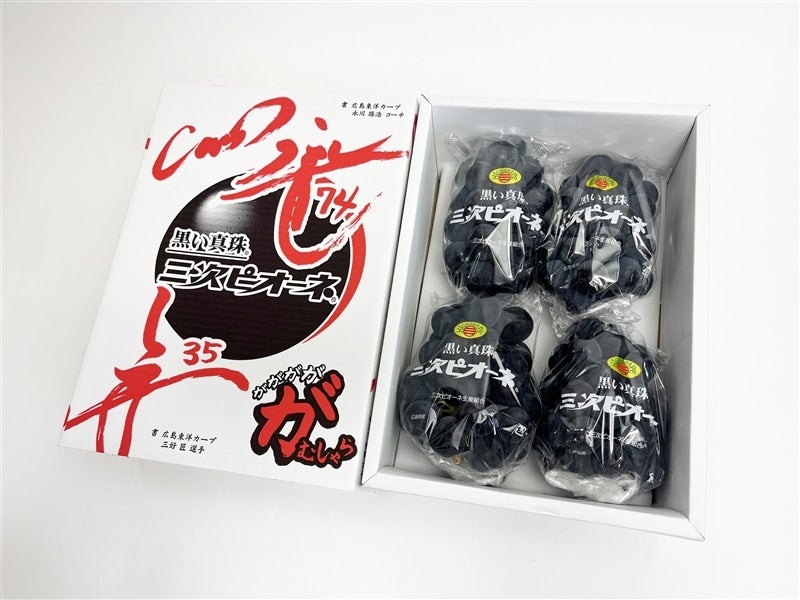 芳醇な香りと甘みを包んだ「黒い真珠」三次ピオーネ。広島カープ応援パッケージでお届けします!