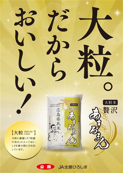 ”美味いにこだわって選別した”JAグループ広島の結集米です。