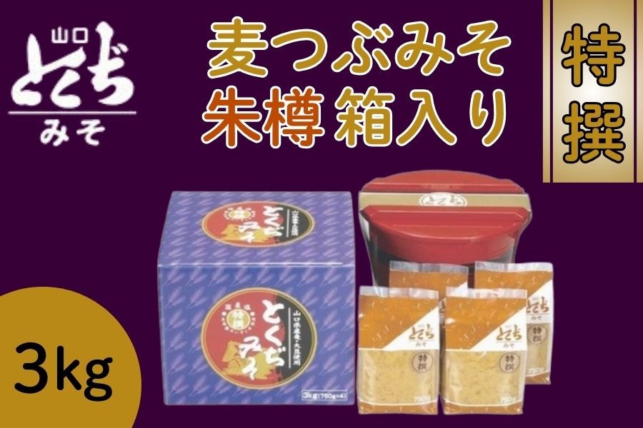 お歳暮 とくぢみそ 特撰 麦つぶみそ 朱樽箱入り 3kg
