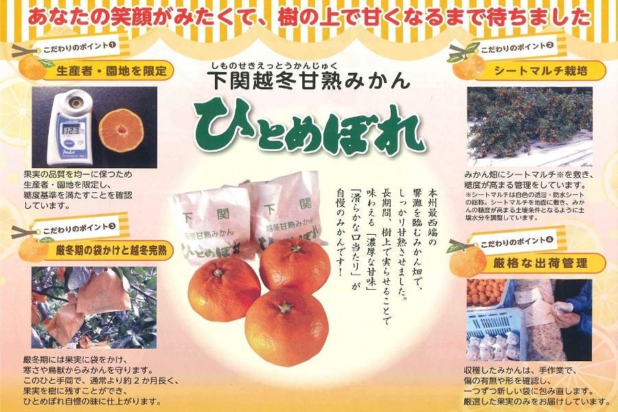 『小さな巨人』小玉サイズの早生、中生みかんを袋かけし、樹上で越冬、完熟させました!下関越冬甘熟みかん「ひとめぼれ」今年も登場です!