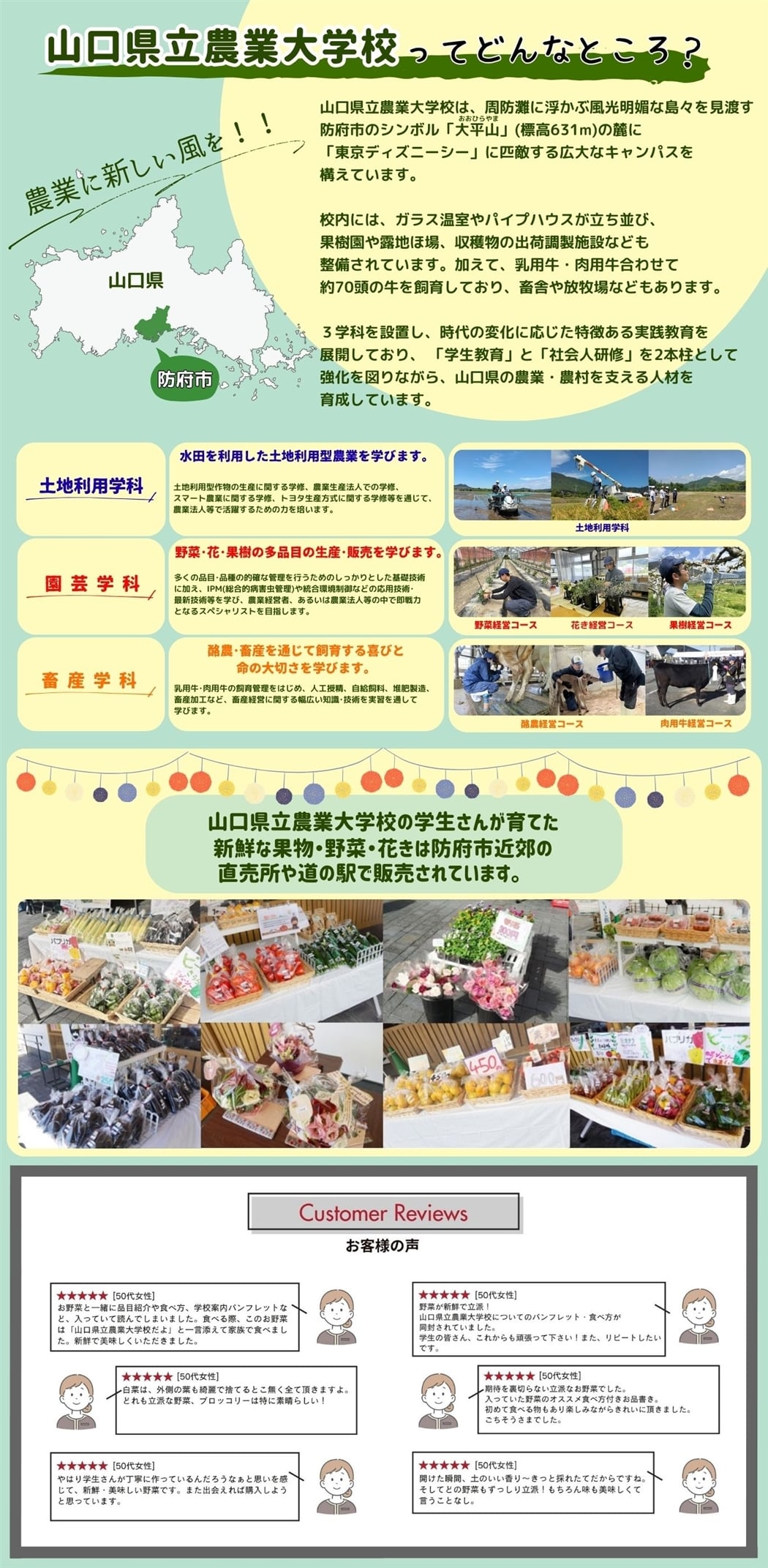 山口県立農業大学校の学生さんが育てた自慢の「野菜ボックス」です。毎週「5セット限定」で販売します!