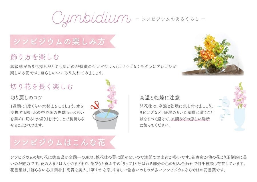 ☆リーフレットも同梱しますので、シンビジウムを長くお楽しみください。