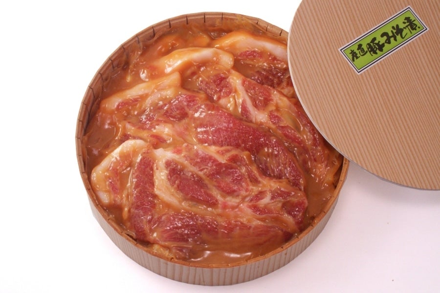 徳島県のブランド豚「阿波美豚(あわびとん)」の肩ロースを、国産大豆使用の味噌に漬け込んだ味噌漬けです。