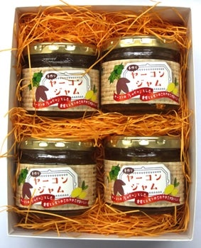 香川県の中山間に位置する「まんのう町」は、空海の築いた満濃池の元、肥沃な土壌に恵まれて、春にはアスパラや菜花、 にんにくなど農業が盛んなエリアです。 まんのう町にあるJA女性部「神野ひまわり会」は、地元の物を愛し、育て、新たな商品開発に日々奮闘しています。 そのような中で生まれたのが自信作の「ヤーコンジャム」です。是非、ご賞味下さい。 ヤーコンには、食物繊維とフラクトオリゴ糖とポリフェノールが含まれており、健康志向の方に人気です。 【原材料】ヤーコン(香川県産)、砂糖、レモン果汁/ゲル化剤(ペクチン)、酸化防止剤(ビタミンC)、クエン酸 【賞味期限】製造日から1年(*容器底面に表示) 【保存方法】直射日光、高温多湿をさけて下さい。開封後は冷蔵庫に保存し、お早目にお召し上がり下さい。