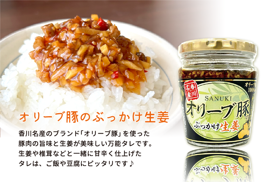 オリーブ牛、オリーブ豚をたっぷり使いご飯のおともに仕上げました。