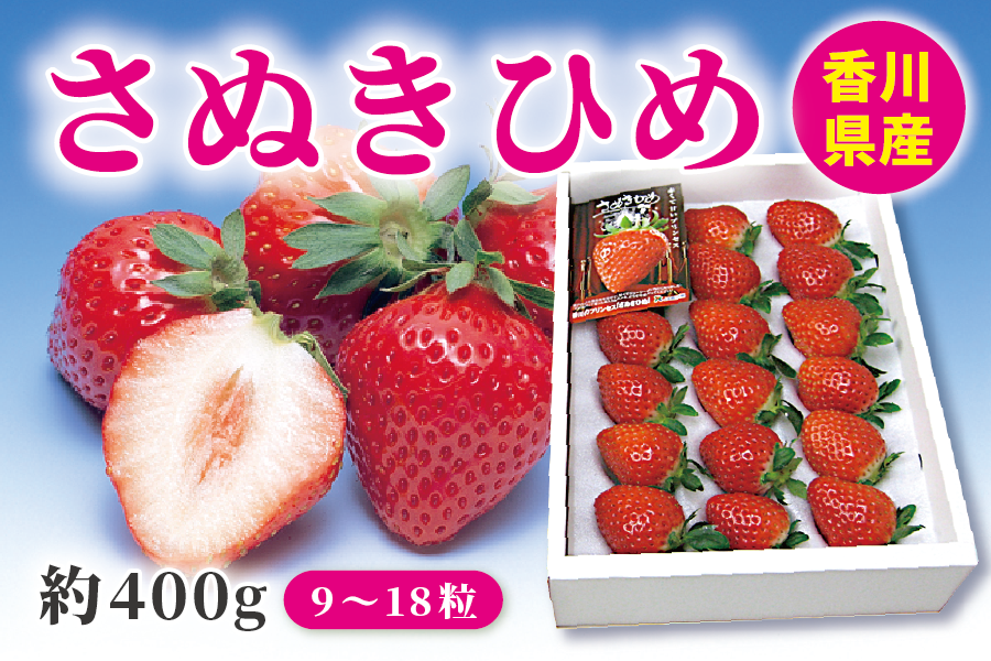 「さぬきひめ」は2009年(平成21年)に品種登録された香川県のオリジナルイチゴです。 香川県農業試験場において、食味が優れて果実が大きく、高設式溶液栽培に適応するいちごを目標に育成されました。 さがほのか、さちのか、とちおとめといったメジャー3品種の優れた性質を継承しています。