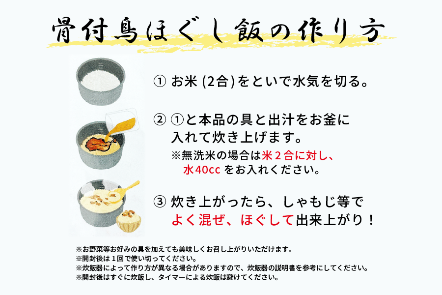 骨付鳥ほぐし飯の素 内容量550g(具1本、出汁350ml)
