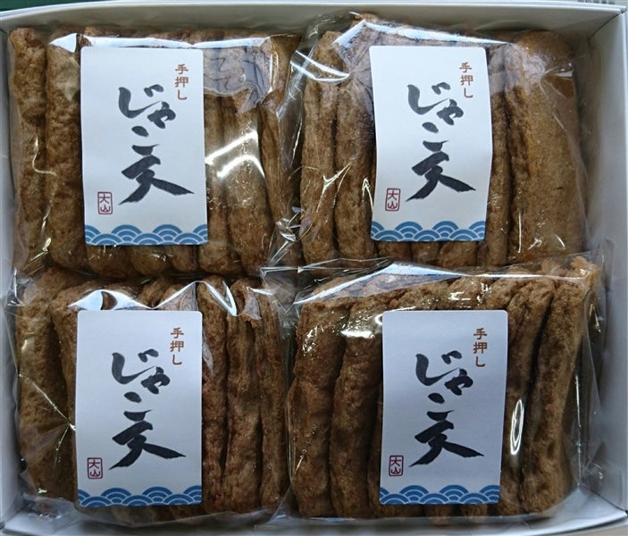 愛媛県宇和島市・大山蒲鉾店の "手作りの逸品” ! 創業昭和33年の大山蒲鉾店が、宇和海でとれた小魚を主原料として、 伝統の技術と最新の衛生的な設備を加え、素材の味を活かした 旨さとコクのある手作りの逸品に仕上げています。 つなぎの澱粉は使用していません。 <商品内容> 〇手押しじゃこ天30枚 ※手押しじゃこ天はすべての工程を手作りで行っています。 <製造>大山蒲鉾店:愛媛県宇和島市 JAえひめ南特産品センター「みなみくん」よりクール冷蔵便でお届けします。 <じゃこ天いろいろ> ※じゃこ天とは、ねり製品の一種です。宇和海でとれる新鮮な小魚を骨ごと、皮付きのまますり身にして油で揚げたものです。一般的な「天ぷら」のように衣をつけて揚げるのではなく、小魚のすり身を平べったい小判型に成型し、そのまま揚げます。小魚の旨みが凝縮され、豊かな風味が自慢です。 ※じゃこ天は宇和島の特産品のひとつで、その歴史は古く、元和元年(1615)、宇和島藩初代藩主・伊達秀宗が仙台から職人を連れてきて蒲鉾を作らせたのが始まりだといわれています。昔から宇和島では魚が豊富に獲れていたので、江戸時代にはすでにねり製品は商品化されていたといいます。 *〇名称:手押しじゃこ天  〇内容量 :55g  〇原材料 :魚肉、食塩、ブドウ糖、食用菜種油/調味料(アミノ酸等)、 保存料(ソルビン酸)、甘味料(ステビア、カンゾウ)   〇賞味期限:製造後6日  〇保存方法:要冷蔵(1℃〜10℃)   〇製造者:大山蒲鉾店(愛媛県宇和島市)      〇原料原産地(魚肉):日本、タイ 【ご注文前にご確認ください】 ※お届け日(曜日含む)のご指定や他商品との同時配送はできません。 ※発送日や着日の事前連絡はできません。 ※クール冷蔵便でのお届けとなります。  送料に加えて、クール代が別途かかります。 ※のし対応、包装について 通常の包装をしてその上にのしを貼り、その上に茶色のあて紙をして、送り状を貼りクール便で発送いたします。 *配達時の事前連絡のご希望や宅配ボックス使用の可否など、運送業者へのご要望につきましてはヤマト運輸へご連絡下さいますようお願いいたします。 あらかじめご了承ください。