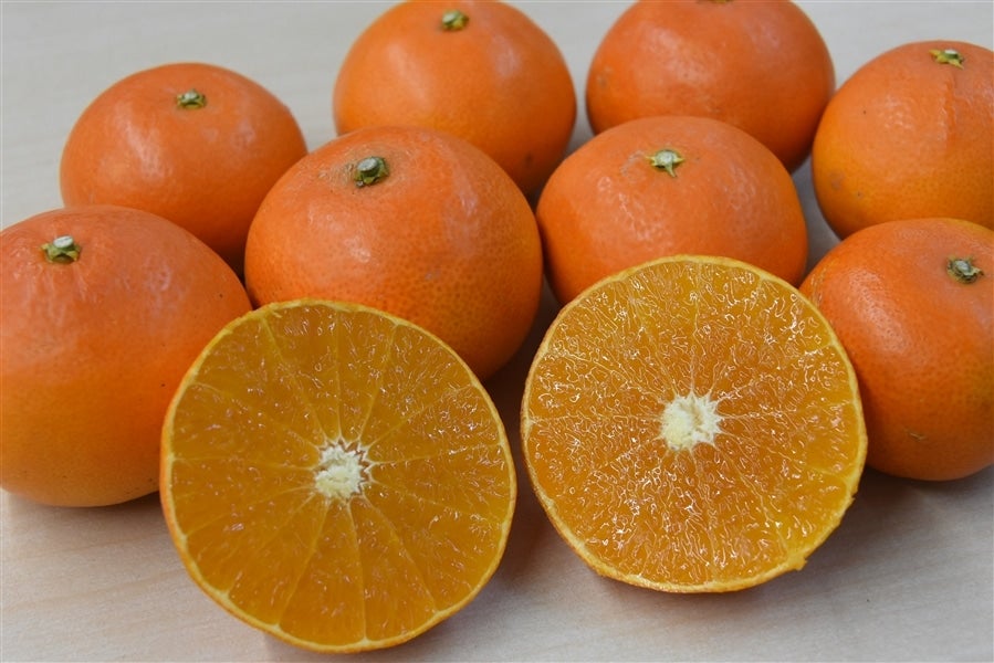 「天草(あまくさ)」は、(清見タンゴール×温州みかん)×ページ(オレンジ)を交配して生まれた柑橘品種です。