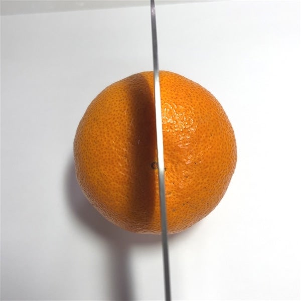 2.食べやすくするため果皮と果肉の間に、ナイフを入れます。