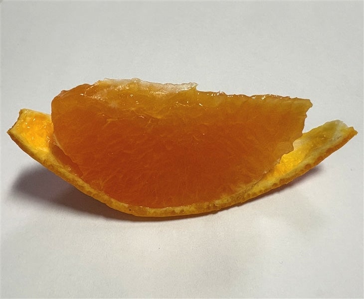 薄くてやわらかい外皮とじょうのう膜(薄皮)を持ち、果肉はとろけるようなゼリーの食感です。