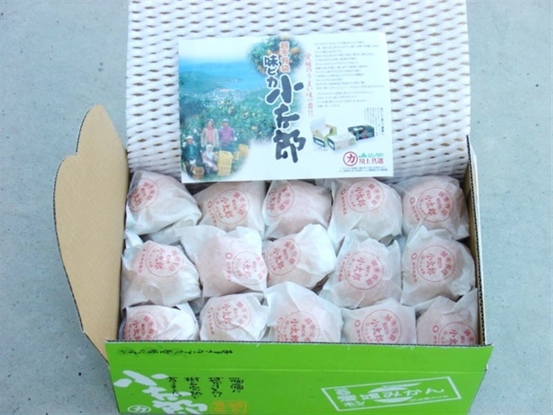 100年の歴史をもつ川上みかんは、空の太陽、海の太陽、石垣の太陽『3つの太陽』と人々の愛情に育まれた太陽の申し子です。みかん1個1個に袋かけを行い、樹上完熟で大切に年越しさせて育てた小太郎。甘さタップリ♪