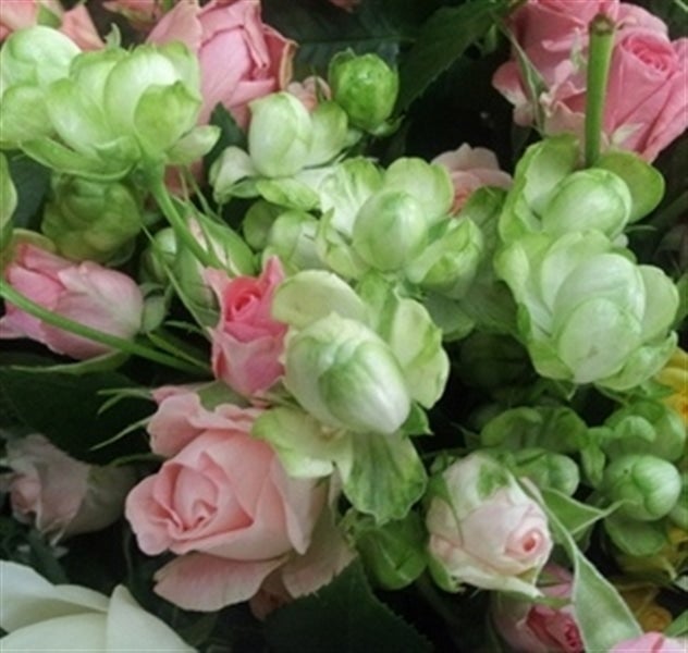 スプレーバラは1本にたくさんの花がついているタイプのバラで、花束にするとバラの華やかさが一層ひきたちます。