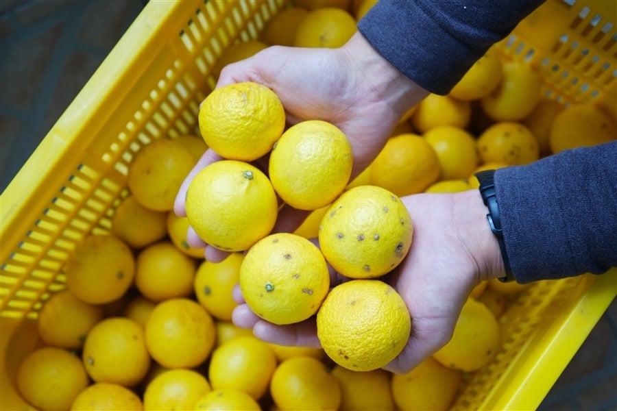 直径4〜6cm程の小ぶりで黄色い柑橘