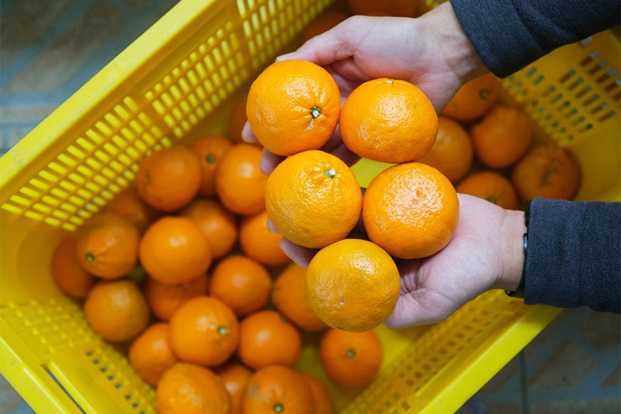 中間母本農6号(ちゅうかんぼほんのうとくごう)は、農研機構で育成された柑橘品種です。 もともとは交配用の新品種として開発されたものですが、味わいの良さから、近年は生果としても流通するようになった希少な柑橘です。 果実は小玉ながら、濃厚な甘みと豊かな香り、ほどよい酸味のバランスが特徴。 果汁が多く、コクのある味わいを楽しめます。 皮が手で剥きにくい品種でカットしてお召し上がりいただく事をおすすめします。種なしのため、そのまま食べやすいのも魅力です。 ※露地栽培のため多少キズはあります。