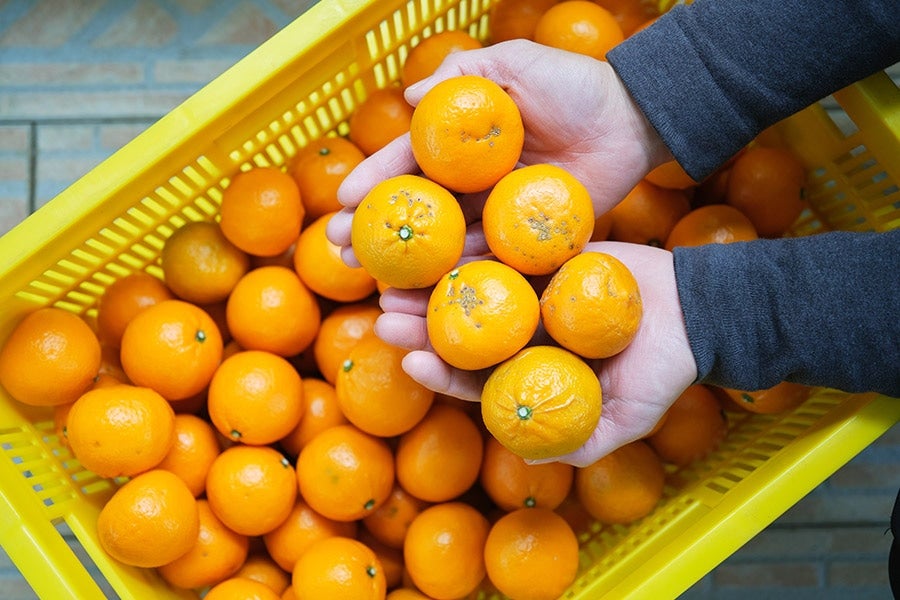 中間母本農6号(ちゅうかんぼほんのうとくごう)は、農研機構で育成された柑橘品種です。 もともとは交配用の新品種として開発されたものですが、味わいの良さから、近年は生果としても流通するようになった希少な柑橘です。 果実は小玉ながら、濃厚な甘みと豊かな香り、ほどよい酸味のバランスが特徴。 果汁が多く、コクのある味わいを楽しめます。 皮が手で剥きにくい品種でカットしてお召し上がりいただく事をおすすめします。種なしのため、そのまま食べやすいのも魅力です。 ※露地栽培のため多少キズはあります。