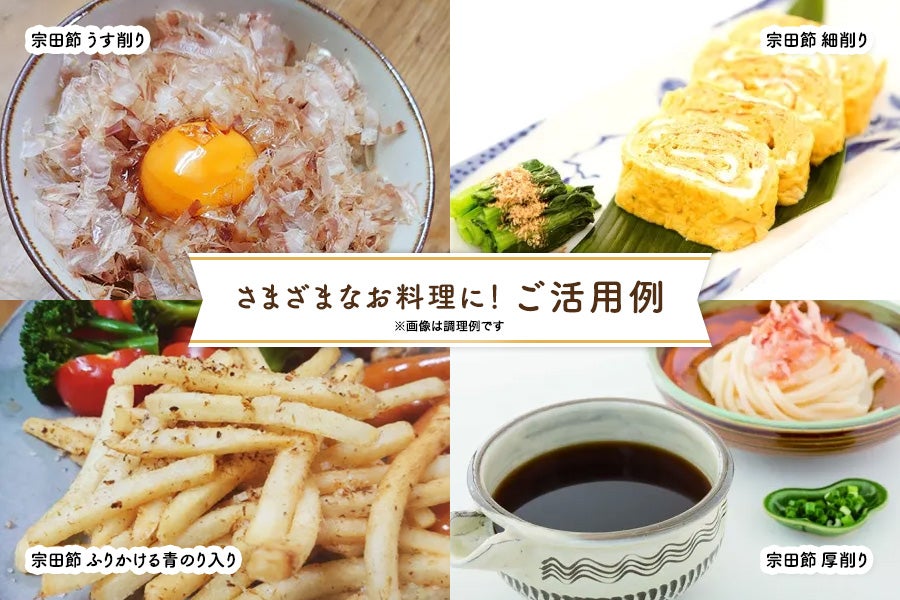 おみそ汁やうどん、そばつゆはもちろん、けずり節をお好み焼きや焼きそばにかけたり、焼飯などの味付けに使ったりと、様々なお料理に応用できます。