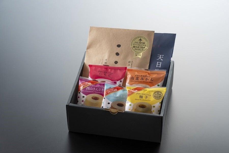 銀不老かりんとう、天日塩おかき、グローカルバウム(柚子・天日塩キャラメル・西山きんとき芋・山北みかん・いちご)7種類×各1