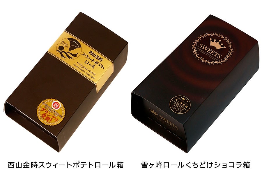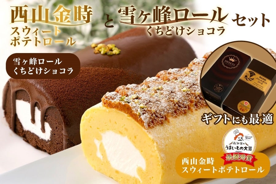 「高知家のうまいもの大賞2022」最優秀賞を受賞した西山金時スウィートポテトロールと濃厚ミルククリームが口の中でとろける雪ヶ峰ロールくちどけショコラのセットです。
