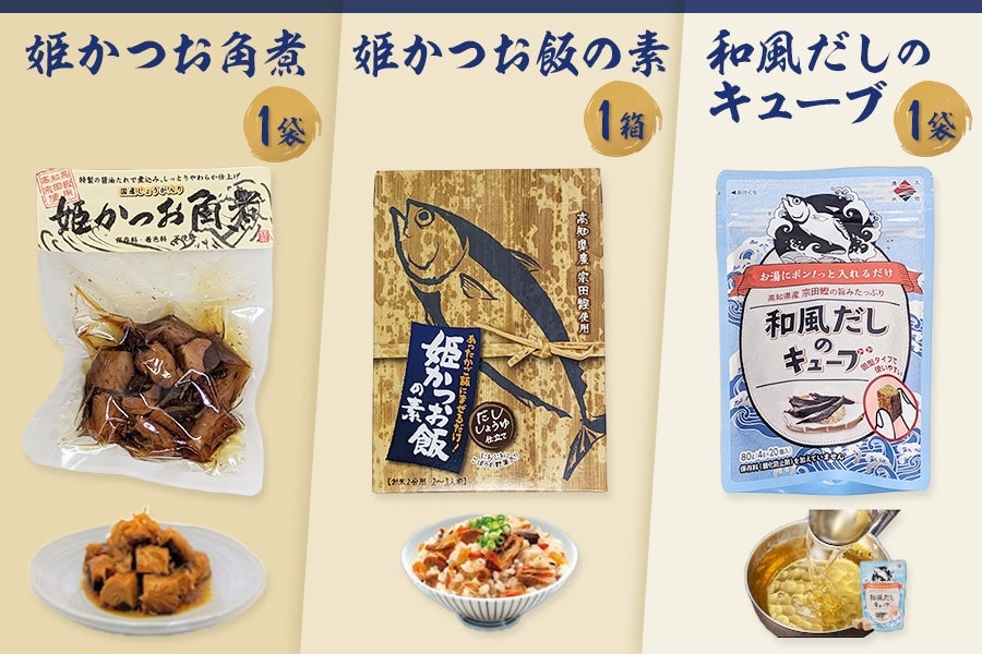「宗田節」生産量日本一のまち、四国最南端の高知県土佐清水で作られた、だしにこだわった商品の詰め合わせセットです。