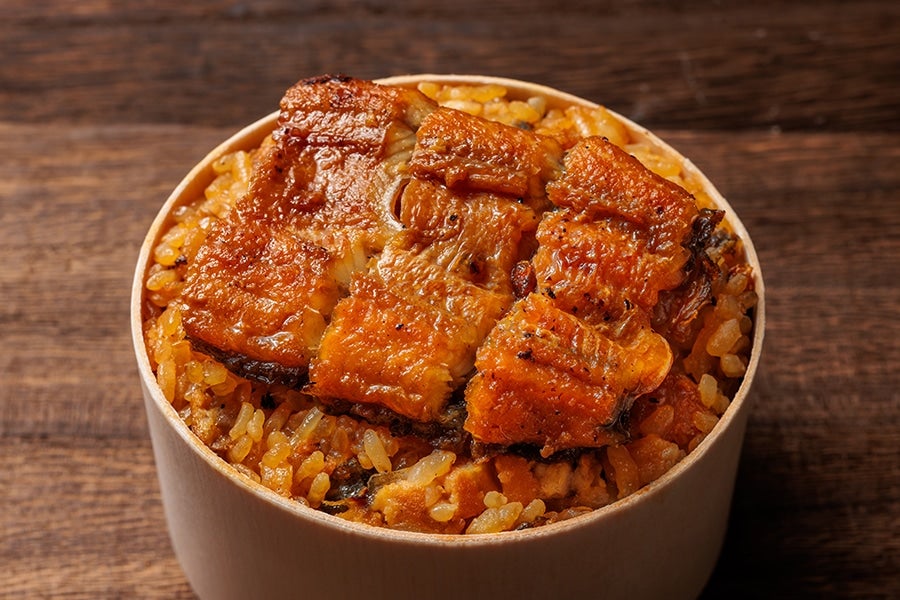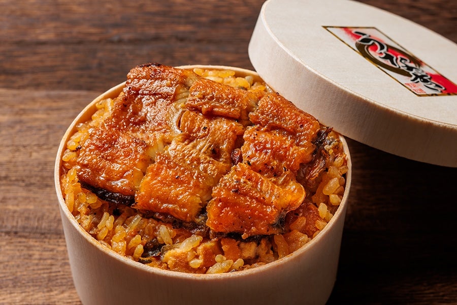 たれをしみこませたご飯にきざみうなぎを混ぜ合わせ、その上にたれをしみこませ、ふっくら蒸し焼きにしたうなぎの蒲焼をのせ、うなぎ本来の美味しさをお楽しみいただくため、身の引き締まった弾力のある仕上がりになっております。