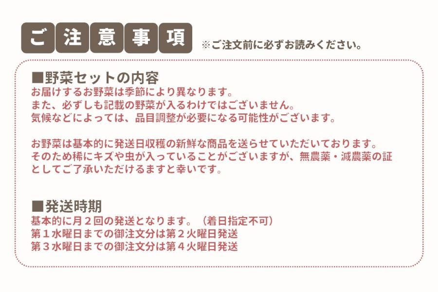 お届けするお野菜は季節により異なります。