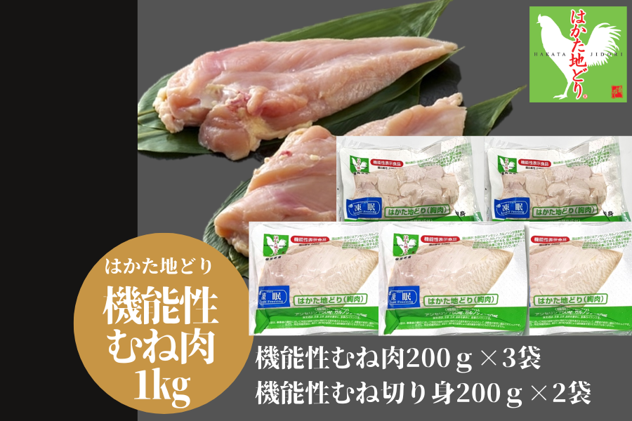 はかた地どり機能性むね肉200gx3、機能性むね切り身200gx2