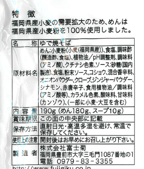 スパイスの効いた粉末ソース付、麺の小麦粉の原料小麦は福岡県産ラー麦100%使用でもちもちしたコシがあります。豚肉、野菜を一緒に炒めれば一品になります。