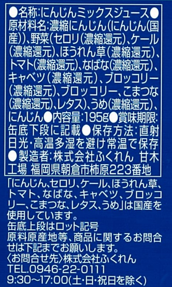 1本で国産野菜350g分(195g×1缶)