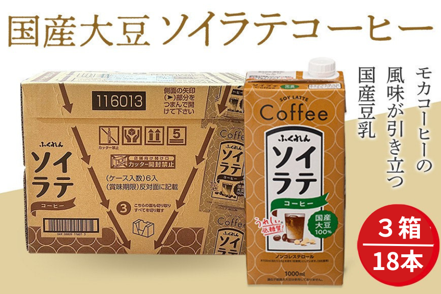 【3箱セット】国産大豆100% ソイラテコーヒー(1000ml×6本)