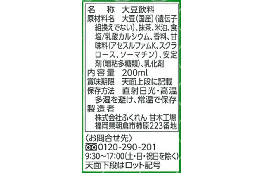 国産大豆をこだわり製法で搾った豆乳を30%使用。福岡県産八女抹茶を使用し本格的な抹茶の風味を味わっていただけます。