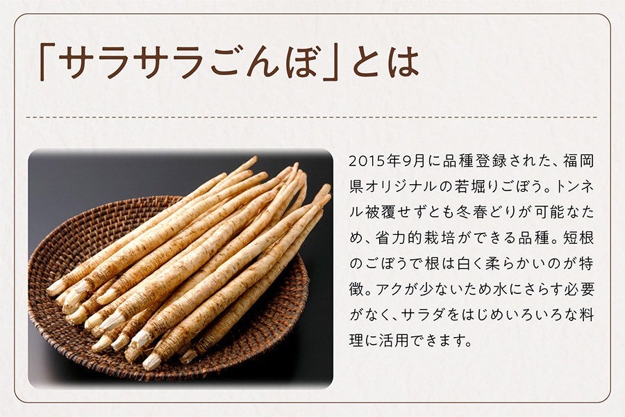 福岡県オリジナル品種のごぼう「サラサラごんぼ」。