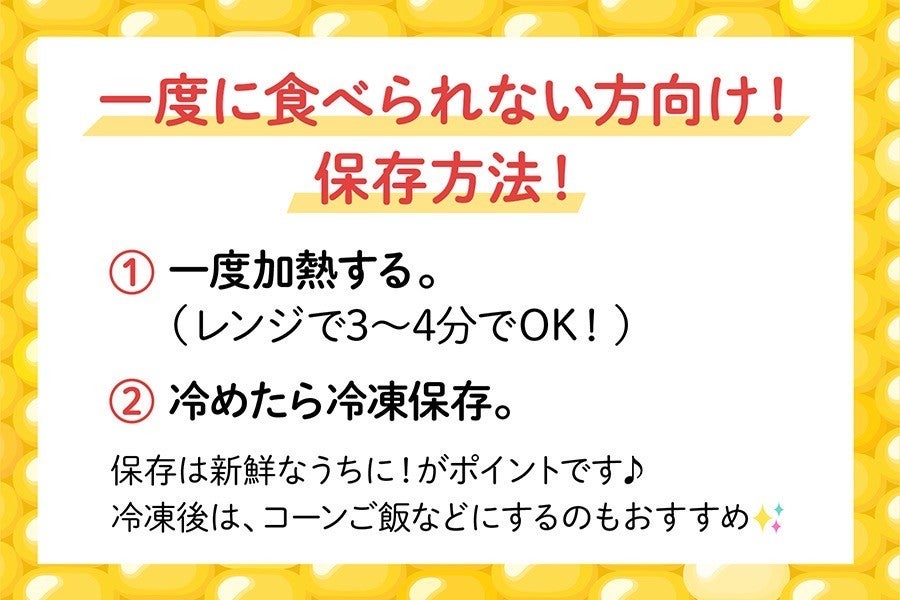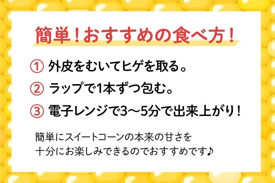 品種は「恵味86」「恵味スター」「わくわくコーン」「ミエルコーンサニー」「ミエルコーン89」のいずれかの品種となります。