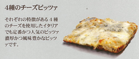 それぞれの特徴がある濃厚かつ風味豊かな4 種のチーズを使用したイタリアでも定番かつ人気のピッツァです。