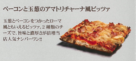 玉葱とベーコンをつかったローマ風ともいえるピッツァ。