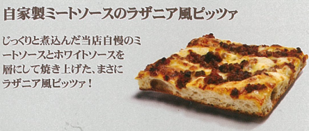 じっくりと煮込んだ当店自慢のミートソースとホワイトソースを層にして焼き上げた、まさにラザニア風ピッツァ !