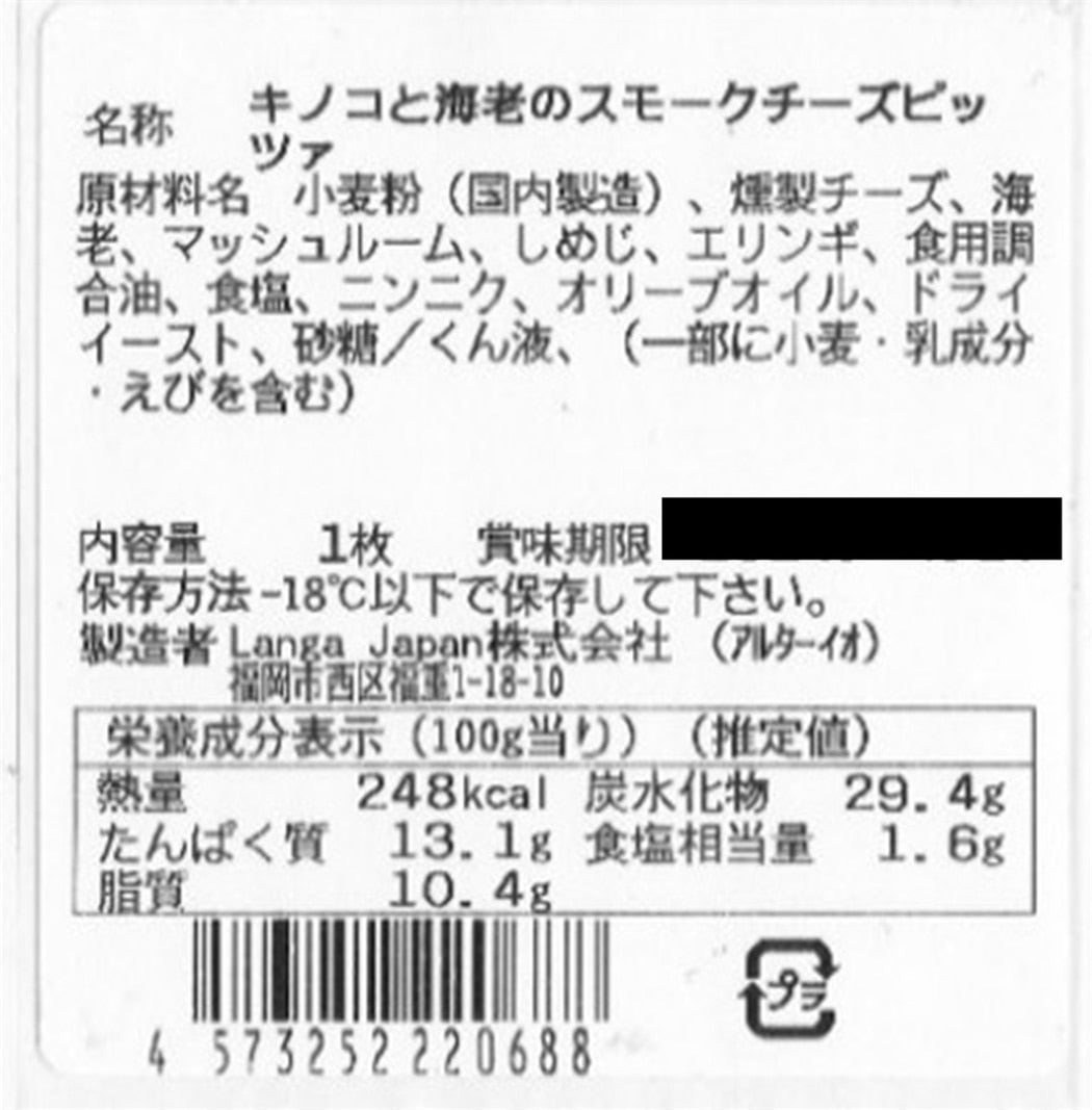 Cキノコと海老のスモークチーズピッツァ(1枚)