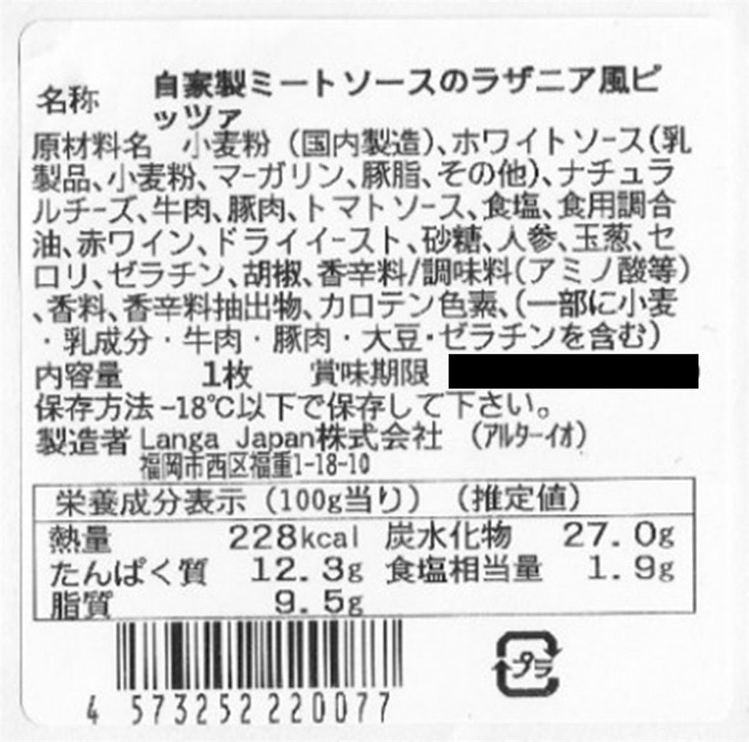 E自家製ミートソースのラザニア風ピッツァ(1枚)