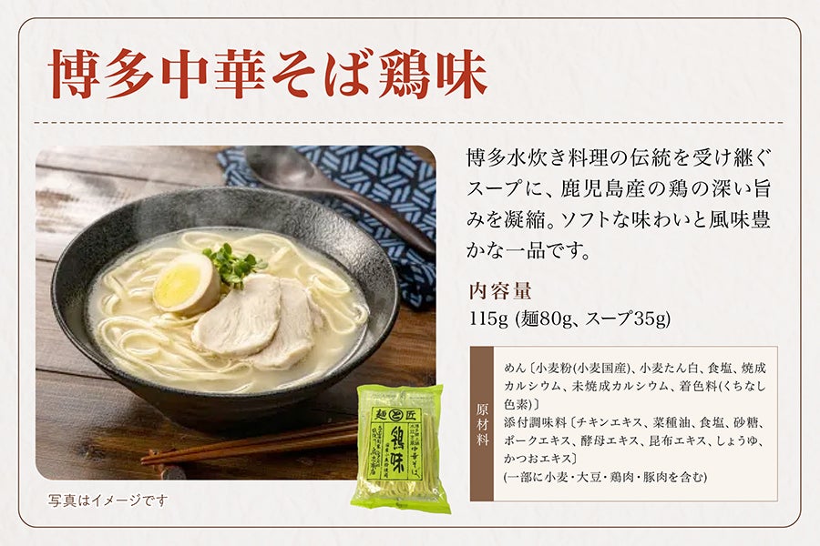 福岡県うきは市の老舗麺会社が麺づくり一筋で作り上げたラーメン・中華そば・冷し中華などをセットにしました。お好きな数でお選びください