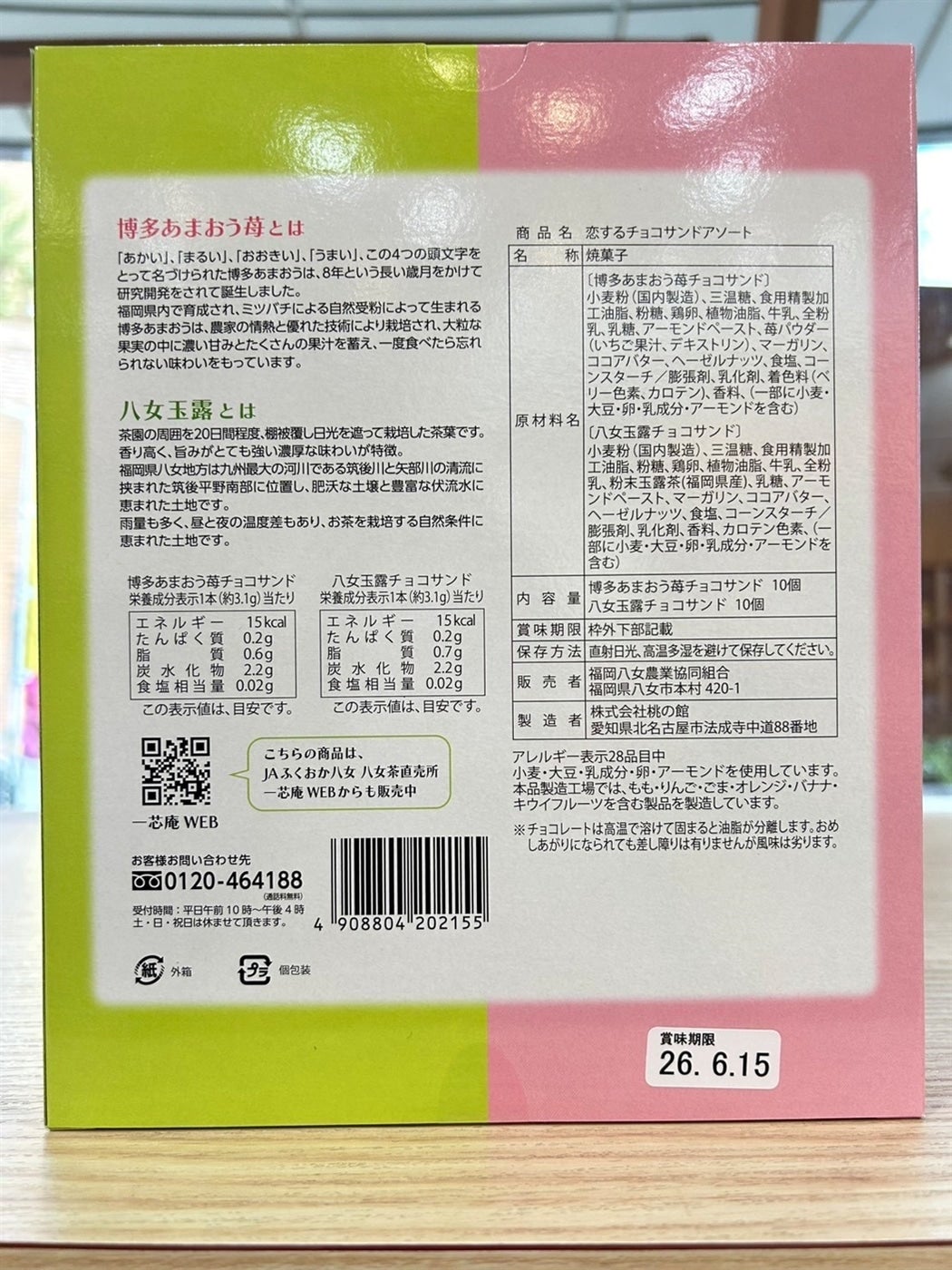 JAふくおか八女 恋するチョコサンド 博多あまおう/八女玉露 チョコサンド アソート