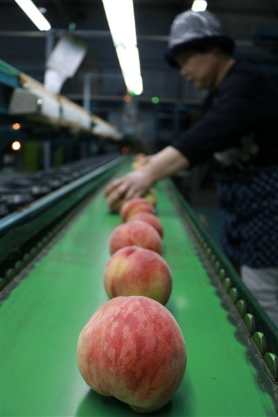 光センサーで選別し、ひとつひとつ丁寧にフルーツキャップをつけて箱づめしています。