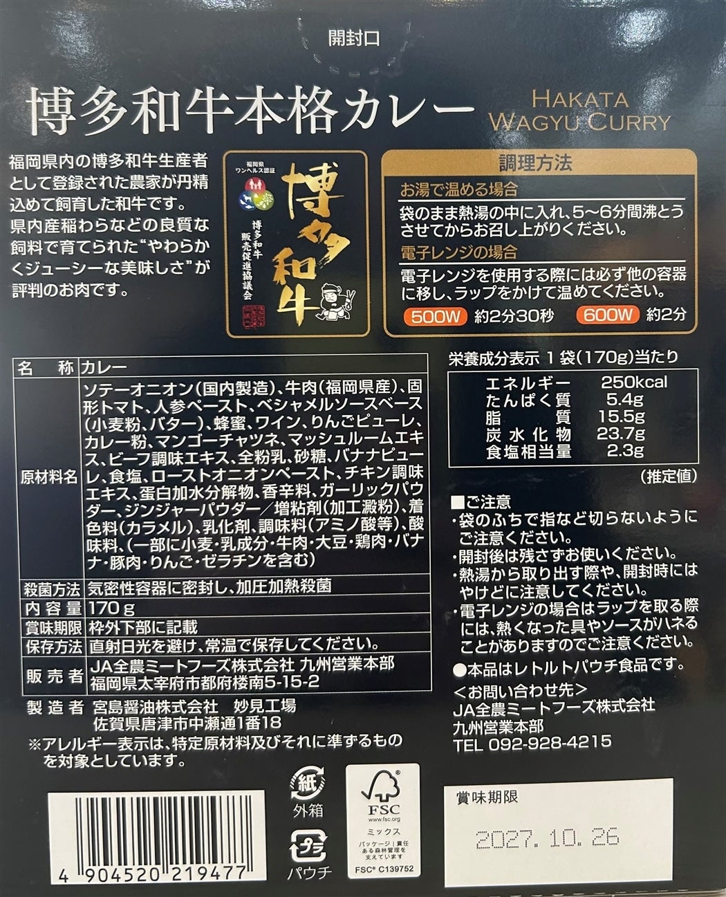 ・博多和牛カレー170g(JA全農ミートフーズ(株))