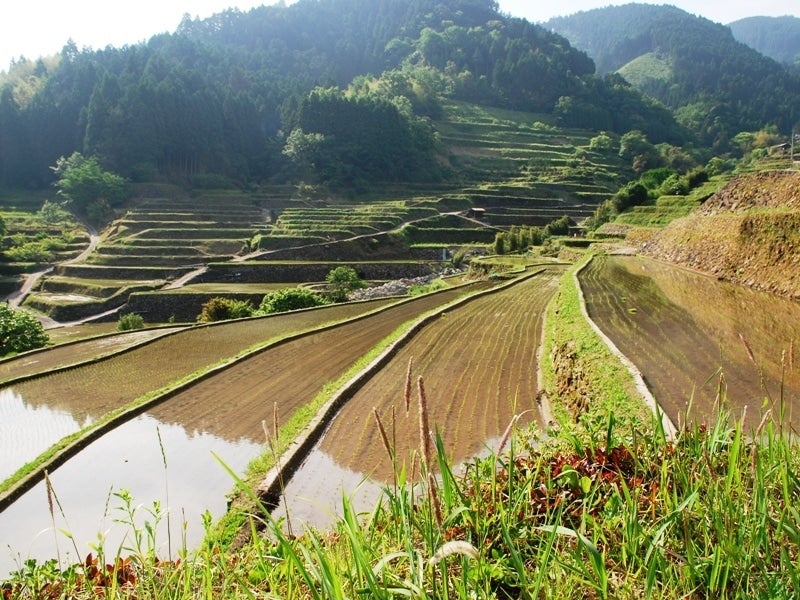 棚田は昼夜の温度差が大きく、水がきれいなことなどからおいしいお米が育つといわれています。