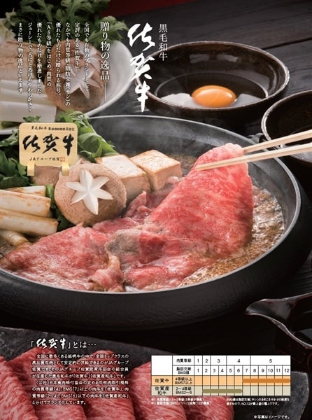 全国でも有数のブランドとして定評のある「佐賀牛」は、肉質等級・脂肪交雑(サシ)の優れたものだけに贈られる称号です。「A5等級」をはじめ、肉質の優れたものだけを厳選しています。ジューシーで、舌にとろけるやわらかさ…まさに贈り物の逸品といえます。