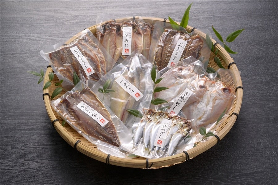 玄海灘の潮の香り漂う佐賀県呼子町。 早朝、近海の島々からの連絡船が着くと、おばちゃんたちの活気に満ちた声があふれる。 通りに所狭しと並ぶ海の幸、山の幸。 これが70年間続いている日本三大朝市のひとつ呼子の朝一です。 こんな呼子の朝市通りから生まれた『呼子朝市詰合せ』 是非、この味を一度ご堪能ください。 お土産やご贈答に最適です。 こちらの商品は「お中元商品」です。 商品は7月1日以降順次発送いたします。 お中元のし付き商品 こちらの商品は【短冊のし付き】商品です。 お中元は短冊のしになります。お名入れはご遠慮ください。 ※コンビニ決済・ATM決済の方はご注文後1週間以内にご入金ください。 <クール冷凍便> <賞味期限>冷凍で60日 <保存方法>−18℃以下で保存 <原材料> 【あじみりん干し】まあじ(佐賀県)、醤油、砂糖、ごま、清酒、調味料(アミノ酸等)、甘味料(甘草)、(原材料の一部に小麦・大豆を含む) 【いわしみりん干し】まいわし(国内産)、醤油、砂糖、ごま、清酒、調味料(アミノ酸等)、甘味料(甘草)、(原材料の一部に小麦・大豆を含む) 【あじひらき】まあじ(佐賀県)、食塩 【めざし】まいわし(国内産)、食塩 【かますひらき】かます(長崎県)、食塩 【さばみりん干し】さば(佐賀県)、醤油、砂糖、ごま、清酒、調味料(アミノ酸等)、甘味料(甘草)、(原材料の一部に小麦・大豆を含む) 【連子鯛】連子鯛(長崎県)、食塩 <お届け内容> ・あじみりん干し(2枚) ・いわしみりん干し(2枚) ・あじひらき(3枚) ・めざし(6尾×1串) ・かますひらき(2枚) ・さばみりん干し(1枚) ・連子鯛(2枚) 【お願い】誠に恐れ入りますが、一部離島につきましては、クール便でお届けできない場合もございます。 ご注文の前に、お届け先の住所をお問合せください。