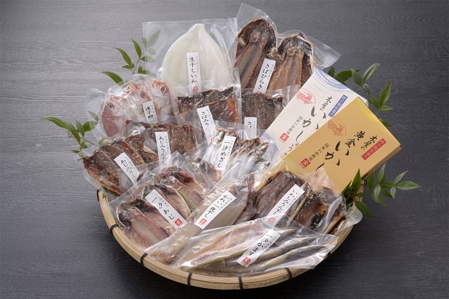 玄海灘の潮の香り漂う佐賀県呼子町。 早朝、近海の島々からの連絡船が着くと、おばちゃんたちの活気に満ちた声があふれる。 通りに所狭しと並ぶ海の幸、山の幸。 これが70年間続いている日本三大朝市のひとつ呼子の朝一です。 こんな呼子の朝市通りから生まれた『呼子朝市詰合せ』 是非、この味を一度ご堪能ください。 お土産やご贈答に最適です。 お歳暮のし付き商品 こちらの商品は【短冊のし付き】商品です。 お歳暮は短冊のしになります。お名入れはご遠慮ください。 商品は11月30日以降順次発送いたします。 ※コンビニ決済・ATM決済の方はご注文後1週間以内にご入金ください。 <クール冷凍便> <賞味期限>製造日より冷凍で60日 <保存方法>−18℃以下で保存 <お届け内容> ・いかしゅうまい(8個入り×1箱) ・黄金いかしゅうまい(8個入り×1箱) ・いか一夜干し(1枚) ・あじ開き(6枚) ・あじみりん干し(6枚) ・いわしみりん干し(6枚) ・めざし(6尾) ・連子鯛開き(2枚) ・かます開き(3枚) ・さばみりん(2枚) ・水かれい(3枚) ・さば開き(2枚) <原材料> 【いかしゅうまい】すけとうだらすり身(国産)、衣(小麦粉、還元水飴、麦芽糖他)、玉葱(国産)、大豆油、いか(国産)、鶏卵(国産)、小麦たん白、食塩、酵母エキス、風味調味料(かつお)、加工でん粉、トレハロース、グルコマンナン、グリシン、調味料(アミノ酸等)、(原材料の一部に小麦、卵を含む) 〈たれ〉醸造酢、醤油、砂糖、食塩、たん白加水分解物、香辛料、調味料(アミノ酸等)、酒精、(原材料の一部に小麦を含む) 【黄金いかしゅうまい】すけとうだらすり身(国産)、衣(鶏卵、砂糖、その他)、玉葱(国産)、 大豆油、いか(国産)、鶏卵、とび子(とび魚卵、日本酒、その他)、小麦たん白、食塩、 酵母エキス、風味調味料(かつお)、加工でん粉、トレハロース、グルコマンナン、グリシン、 着色料(カロテン)、調味料(アミノ酸等)、(原材料の一部に小麦、卵を含む) 〈たれ〉醸造酢、醤油、砂糖、食塩、たん白加水分解物、香辛料、調味料(アミノ酸等)、酒精、(原材料の一部に小麦を含む) 【いか一夜干し】いか(長崎県) 【あじ開き】まあじ(佐賀県)、食塩 【あじみりん干し】まあじ(佐賀県)、醤油、砂糖、ごま、清酒、調味料(アミノ酸等)、甘味料(甘草)、(原材料の一部に小麦・大豆を含む) 【いわしみりん干し】まいわし(国内産)、醤油、砂糖、ごま、清酒、調味料(アミノ酸等)、甘味料(甘草)、(原材料の一部に小麦・大豆を含む) 【めざし】まいわし(国内産)、食塩 【連子鯛】連子鯛(長崎県)、食塩 【かます開き】かます(長崎県)、食塩 【さばみりん干し】さば(佐賀県)、醤油、砂糖、ごま、清酒、調味料(アミノ酸等)、甘味料(甘草)、(原材料の一部に小麦・大豆を含む) 【かれい】水かれい(島根県)、食塩 【さば開き】さば(佐賀県)、食塩 【お願い】誠に恐れ入りますが、一部離島につきましては、クール便でお届けできない場合もございます。 ご注文の前に、お届け先の住所をお問合せください。