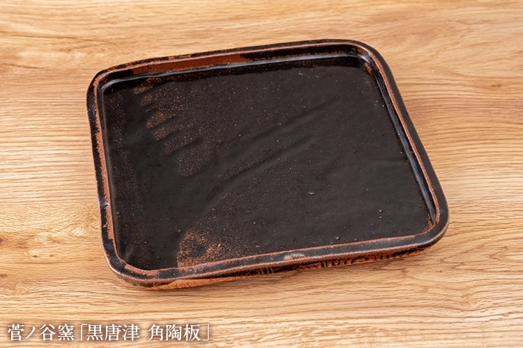 2)菅ノ谷窯(すがのたにがま)「黒唐津 角陶板」