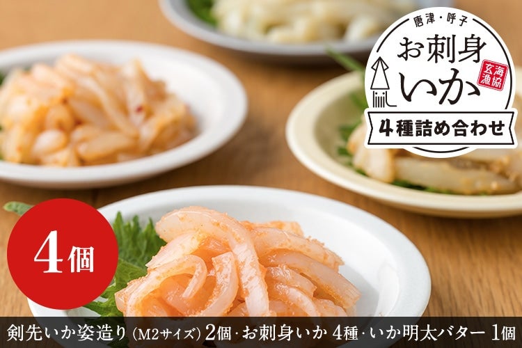 名称:呼子 お刺身いか4種セット(めんたい・ピリ辛・青じそ・ごまあえ)