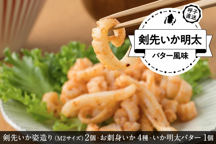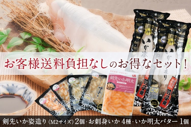 【水産物キャンペーン・送料無料】剣先いか姿造り2点とお刺身いか4種・剣先いか明太 バター風味の特別セット(10,000円)