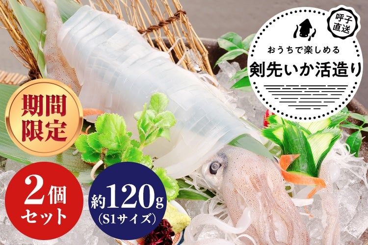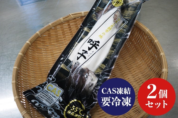 玄界灘産の今が旬の剣先イカの活造り[期間限定商品]と、松イカ(スルメイカ)の姿造りを、魚本来の「旨味・香り・みずみずしさ」を保てる最新のCAS凍結で瞬間凍結しご家庭にお届けします!それぞれの食感の違いも楽しめるお得なセットです。